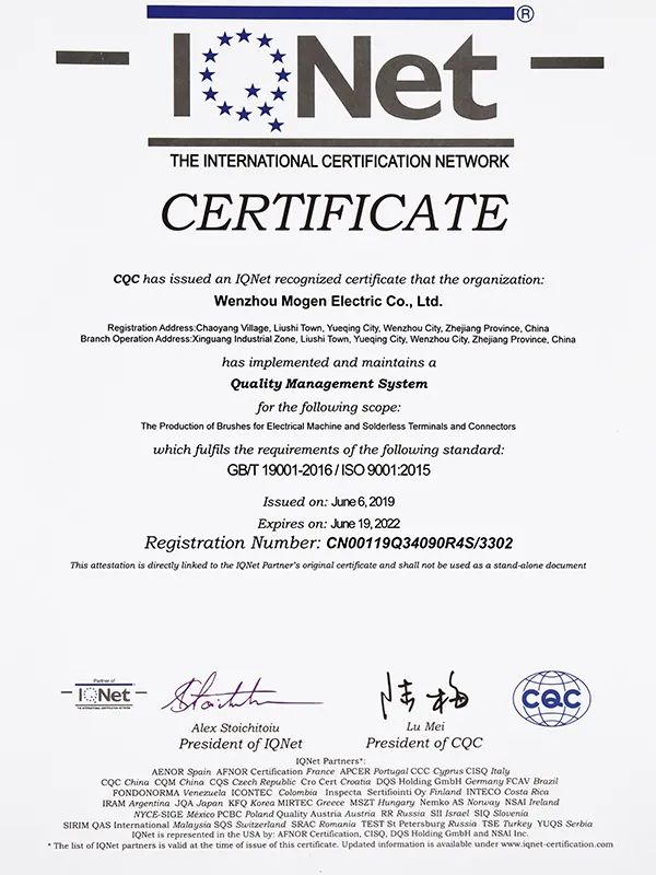 Превосходное качество рождается из стремления к совершенству в каждой детали. ООО «Вэньчжоу Могэнь Электрик» обладает мощными техническими возможностями, передовыми производственными процессами и совершенным испытательным оборудованием. Мы всегда придерживаемся философии «Превосходное качество, превосходящее ожидания клиентов», строго следуем требованиям международного стандарта ISO9001 при создании системы менеджмента качества, применяемой для контроля всего процесса проектирования, производства и обслуживания продукции. Компания получила сертификат системы менеджмента качества ISO9001 от Китайского центра сертификации качества и сертификат TUV. Наша продукция прошла сертификацию CE Евросоюза и экологическую сертификацию SGS, соответствующую стандарту RoHS. Продукция активно продается по всему Китаю и экспортируется на Ближний Восток, в Юго-Восточную Азию, Евросоюз, США, Австралию, Южную Америку и другие страны и регионы.